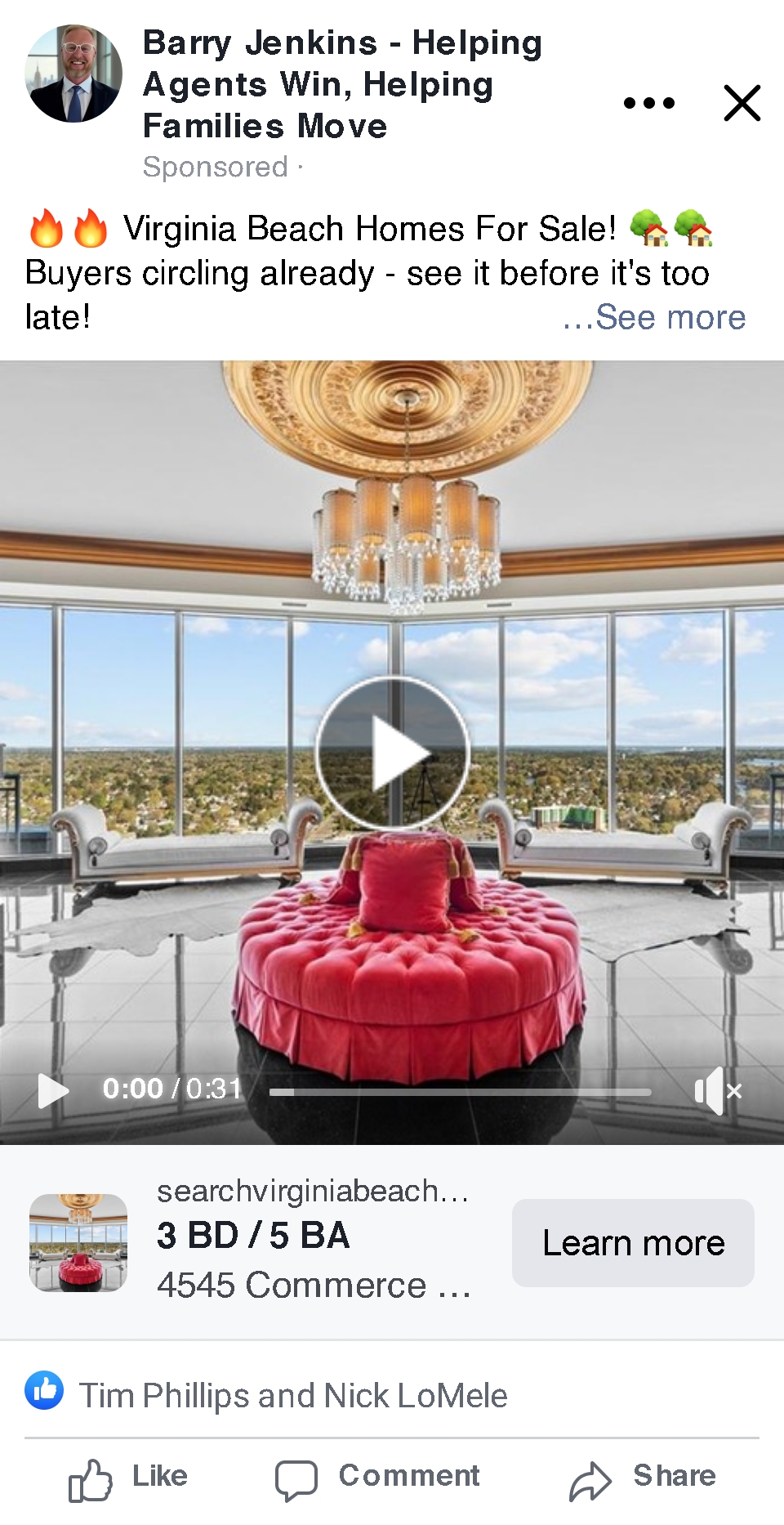 Below are just a few examples of the targeted advertising on Facebook that your home will benefit from when you hire me as your agent.