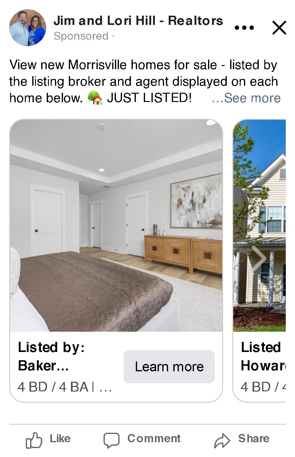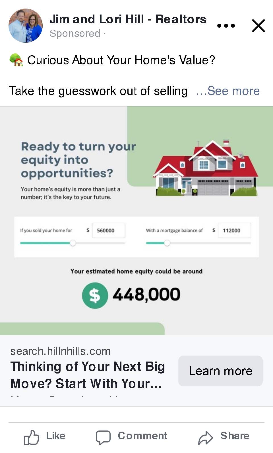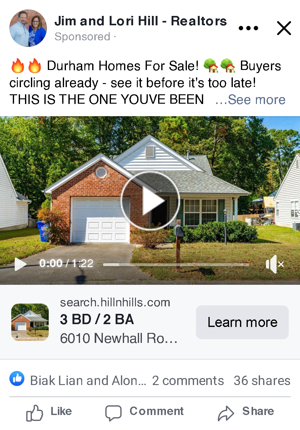 Below are just a few examples of the targeted advertising on Facebook that your home will benefit from when you hire me as your agent.
